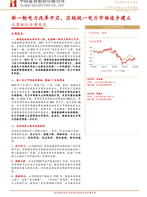 【华西证券】【20220821】20220821-华西证券-计算机行业周观点:新一轮电力改革开启,区域统一电力市场逐步建立-29页 行业研究