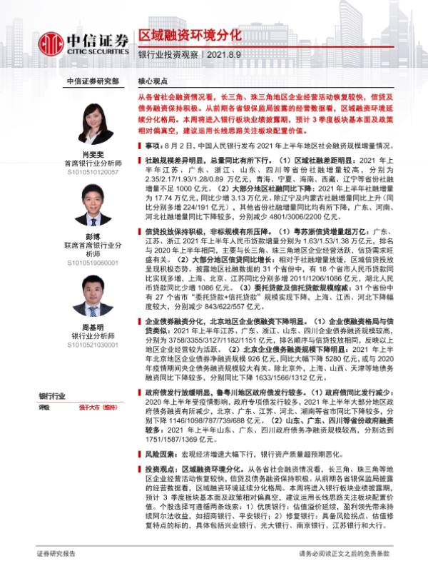 【中信证券】【20210809】银行业投资观察:区域融资环境分化-11页 行业研究