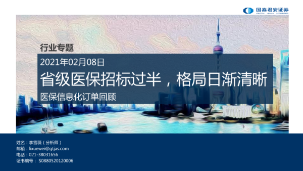【国泰君安证券】【20210208】医保信息化订单回顾:省级医保招标过半,格局日渐清晰-21页 行业研究