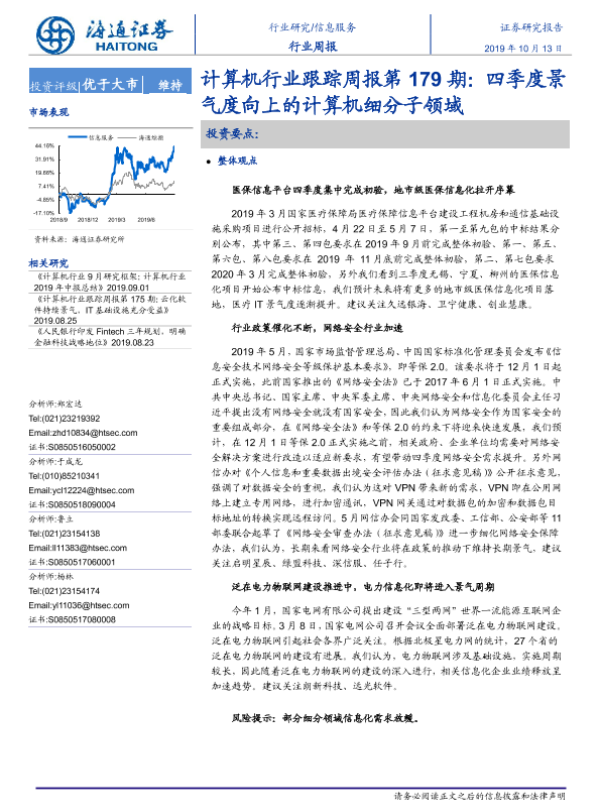 【海通证券】【20191013】计算机行业跟踪周报第179期:四季度景气度向上的计算机细分子领域-8页 行业研究