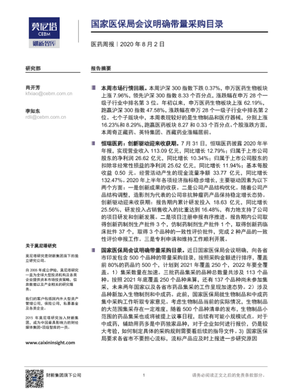 【莫尼塔研究】【20200802】国家医保局会议明确带量采购目录-7页 行业研究