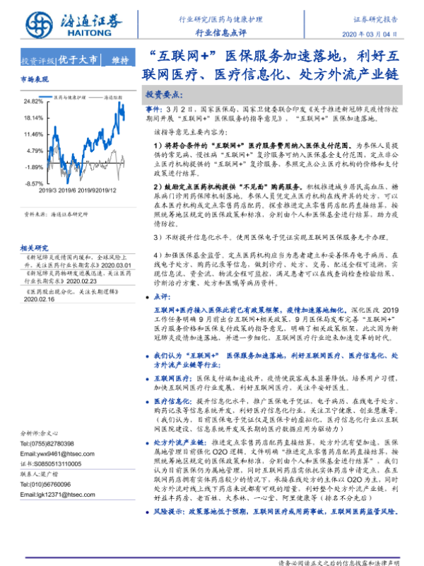 【海通证券】【20200304】“互联网+”医保服务加速落地,利好互联网医疗、医疗信息化、处方外流产业链-2页 行业研究