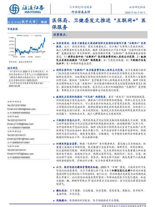 【海通证券】【20200303】医保局、卫健委发文推进“互联网+”医保服务-2页 行业研究