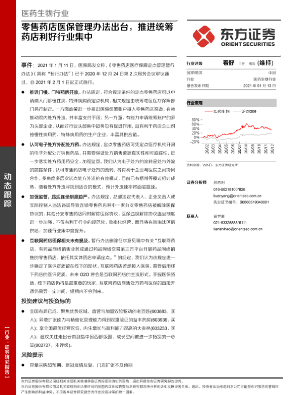 【东方证券】【20210113】零售药店医保管理办法出台,推进统筹药店利好行业集中-3页 行业研究