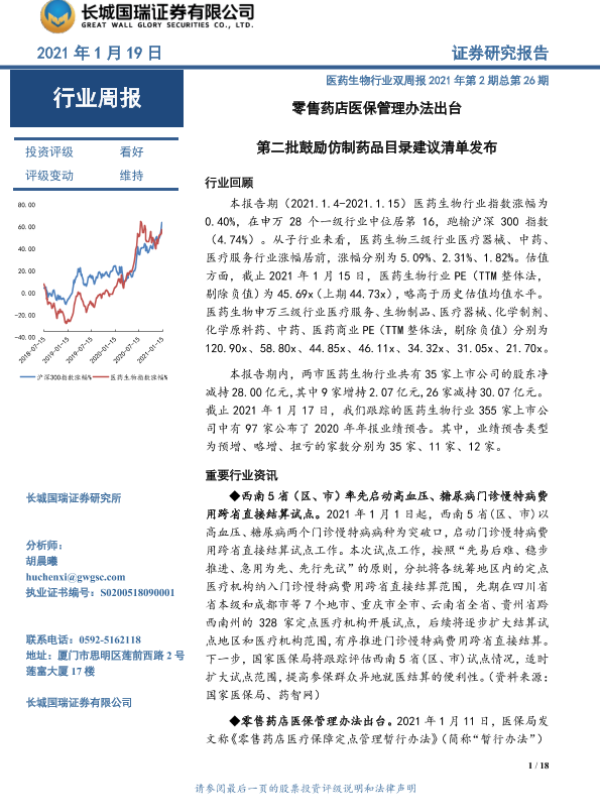 【长城国瑞证券】【20210119】零售药店医保管理办法出台 第二批鼓励仿制药品目录建议清单发布-18页 行业研究