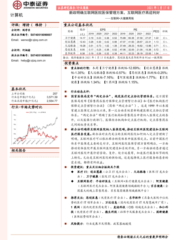 【中泰证券】【20210117】互联网+大健康周报:新政明确互联网医院医保管理方案,互联网医疗再迎利好-9页 行业研究