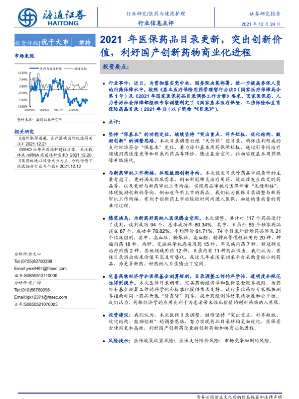 【海通证券】【20211224】2021年医保药品目录更新,突出创新价值,利好国产创新药物商业化进程-2页 行业研究