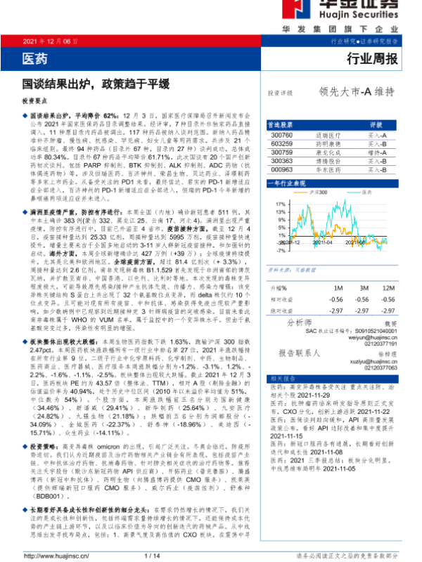 【华金证券】【20211206】医药行业周报:国谈结果出炉,政策趋于平缓-14页 行业研究