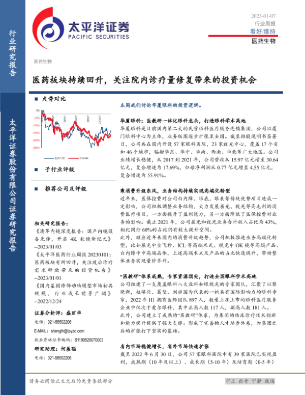 【太平洋证券】【20230107】医药生物行业周报:医药板块持续回升,关注院内诊疗量修复带来的投资机会-17页 行业研究