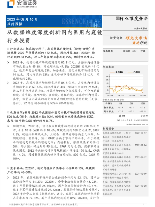 【安信证券】【20230817】医疗器械-从数据维度深度剖析国内医用内窥镜行业投资-26页 证券期货研究报告