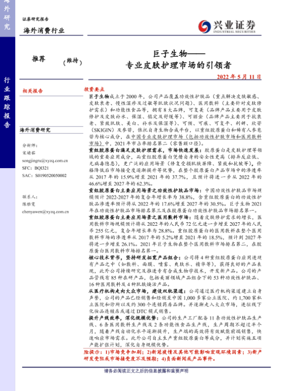 【兴业证券】【20220511】巨子生物——专业皮肤护理市场的引领者-27页 行业研究