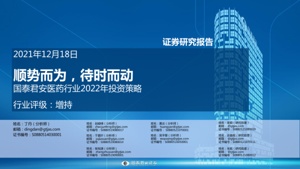 【国泰君安证券】【20211218】医药行业2022年投资策略:顺势而为,待时而动-72页 行业研究