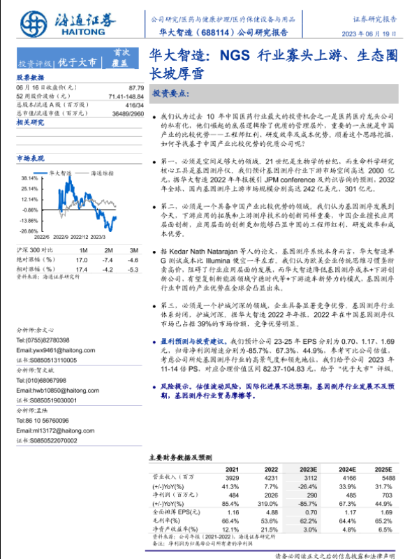 【海通证券】【20230619】华大智造:NGS行业寡头上游、生态圈长坡厚雪-40页 行业研究