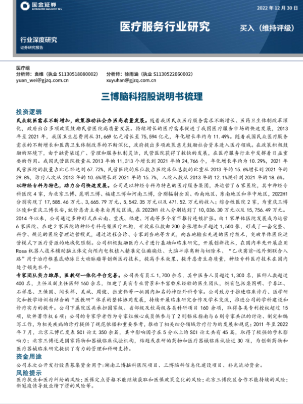 【国金证券】【20221230】深度报告-20221230-国金证券-医疗服务行业深度研究_三博脑科招股说明书梳理-17页 招股书
