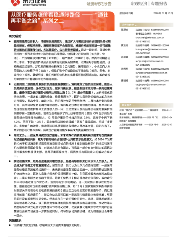 【东方证券】【202601】从医疗服务涨价看稳通胀路径——“通往再平衡之路”系列之二-10页 证券期货研究报告