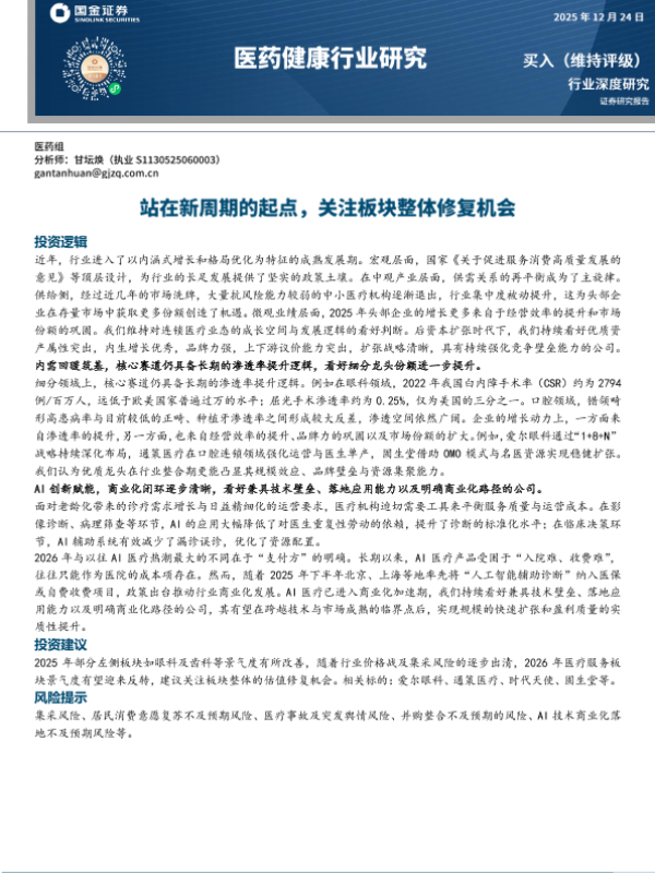 【国金证券】【2025】医药健康行业研究:站在新周期的起点,关注板块整体修复机会-16页 证券期货研究报告