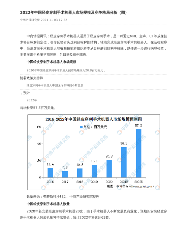 【中商产业研究院】【2022】2022年中国经皮穿刺手术机器人市场规模及竞争格局分析(图)-2页 行业研究