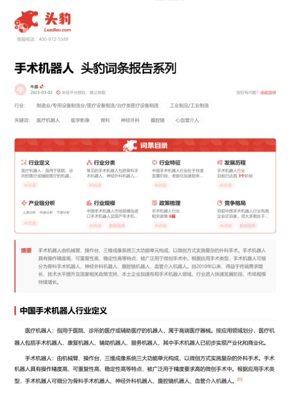 【头豹研究院】【20230728】手术机器人 头豹词条报告系列-13页 行业研究