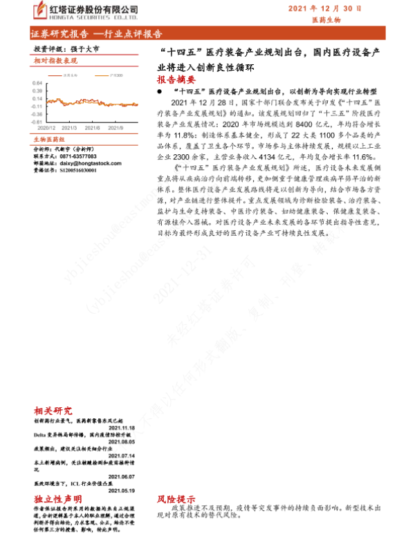 【红塔证券】【20211230】'十四五'医疗装备产业规划出台,国内医疗设备产业将进入创新良性循环-3页 行业研究