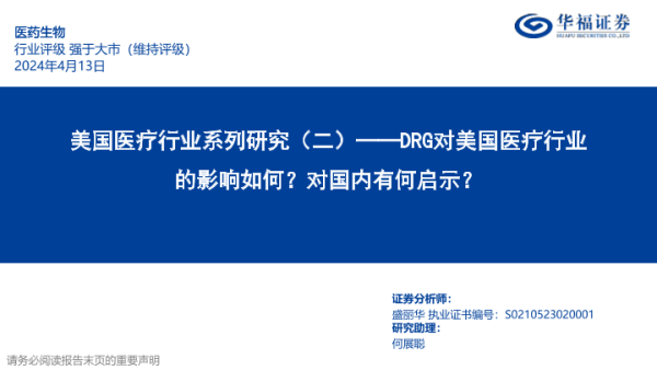 【华福证券】【20240413】美国医疗行业系列研究(二):DRG对美国医疗行业的影响如何?对国内有何启示?-58页 行业研究