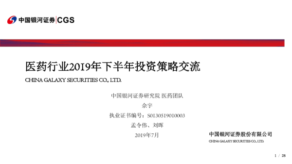 【银河证券】【201907】医药行业2019年下半年投资策略交流-28页 行业研究