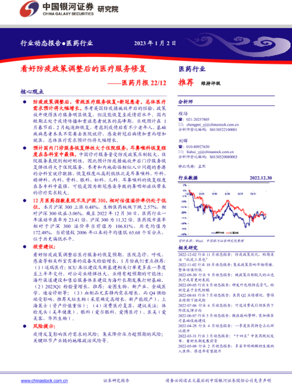 【银河证券】【20230102】看好防疫政策调整后的医疗服务修复-16页 行业研究