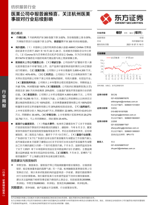 【东方证券】【20210719】纺织服装行业:医美公司中报普遍预喜,关注杭州医美事故对行业后续影响-7页 行业研究