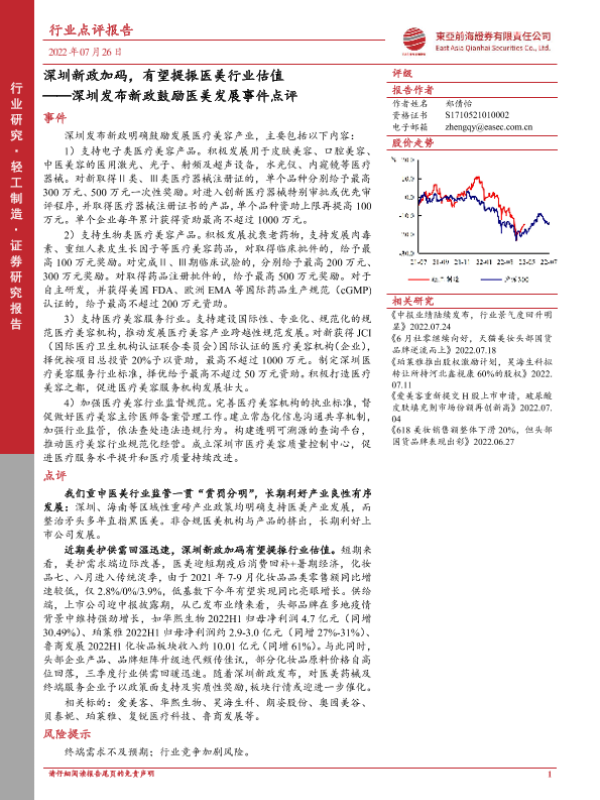 【东亚前海证券】【20220726】深圳发布新政鼓励医美发展事件点评-3页 行业研究