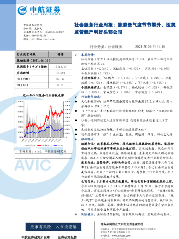 【中航证券】【20210614】社会服务行业周报:旅游景气度节节攀升,医美监管趋严利好头部公司-8页 行业研究