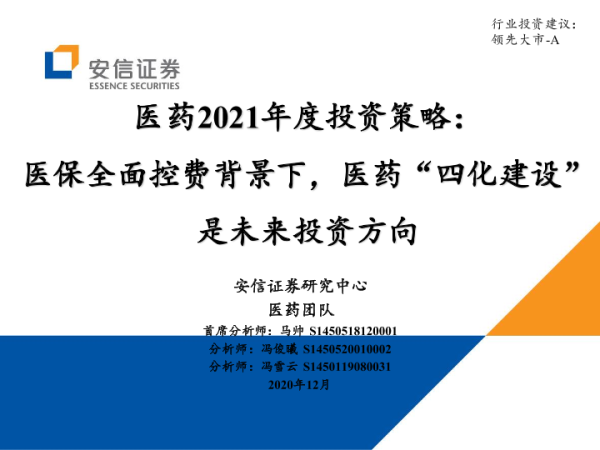 【安信证券】【20201204】医药2021年度投资策略:医保全面控费背景下,医药‘四化建设’是未来投资方向-103页 行业研究
