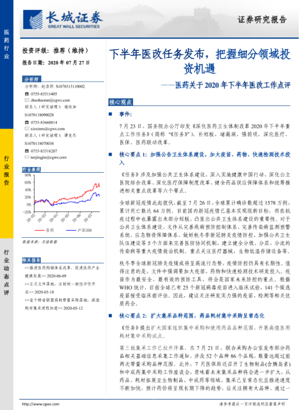 【浙商证券】【20200723】深化医药卫生体制改革2020年下半年重点工作任务点评-2页 行业研究