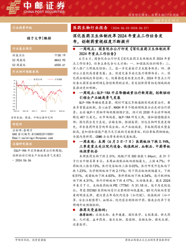 【中邮证券】【20240610】深化医药卫生体制改革2024年重点工作任务发布,创新药重视程度不断提升-19页 行业研究