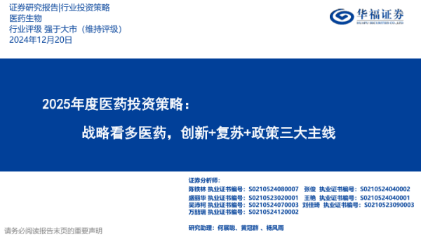 【华福证券】【20241220】2025年度医药投资策略:战略看多医药,创新+复苏+政策三大主线-71页 行业研究