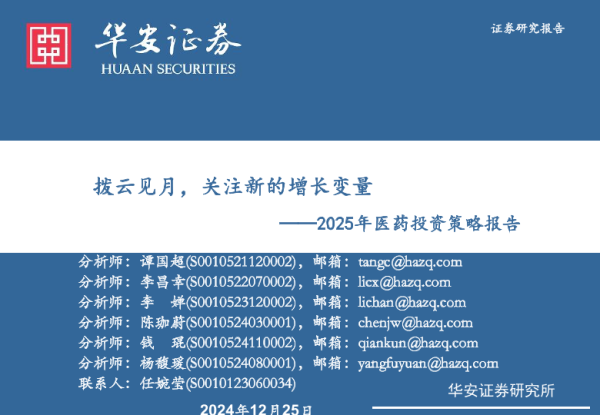 【华安证券】【20241225】2025年医药投资策略报告:拨云见月,关注新的增长变量-57页 行业研究