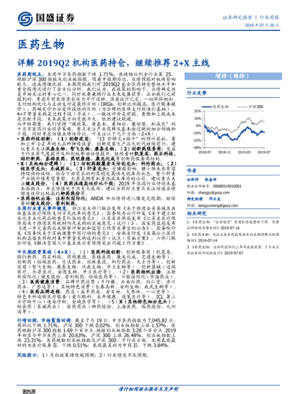 【国盛证券】【20190720】医药生物行业周报:详解2019Q2机构医药持仓,继续推荐2+X主线-21页 行业研究