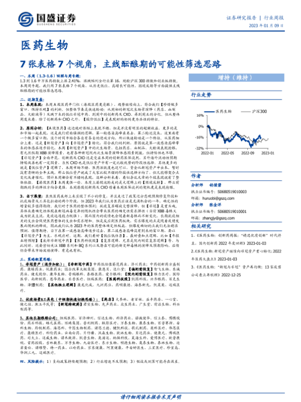 【国盛证券】【20230109】医药生物行业周报:7张表格7个视角,主线酝酿期的可能性筛选思路-33页 行业研究