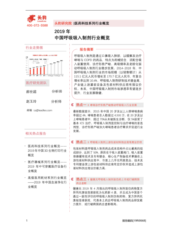【头豹研究院】【2019】中国呼吸吸入制剂行业概览-40页 行业研究