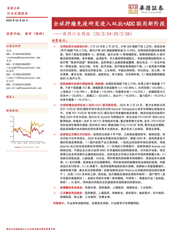 【华源证券】【20250302】全球肿瘤免疫研发进入双抗+ADC联用新阶段-13页 行业研究