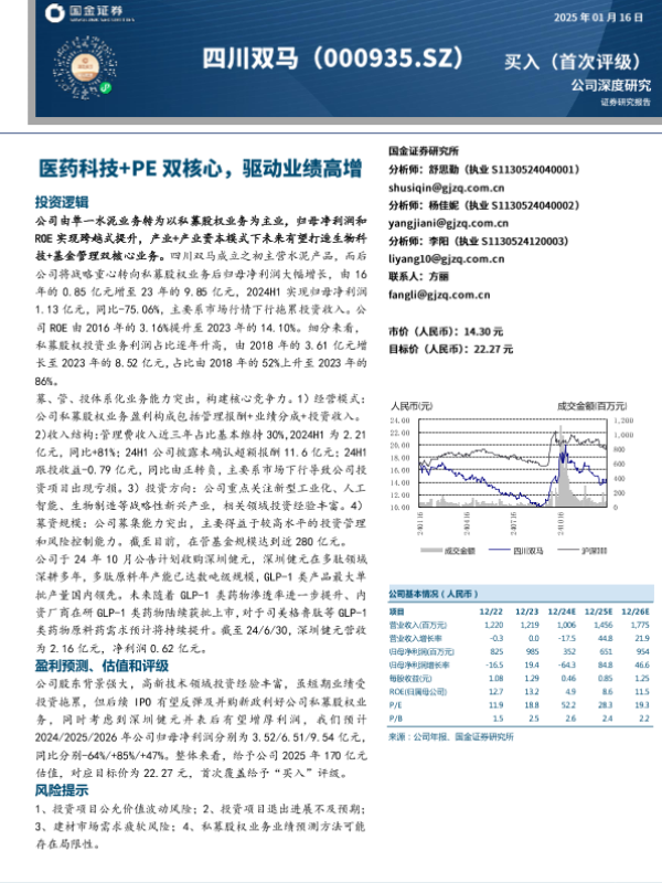 【国金证券】【202501】四川双马(000935)公司深度研究:医药科技+PE双核心,驱动业绩高增-21页 行业研究