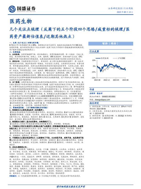 【国盛证券】【20230814】医药生物行业周报:几个关注点梳理-26页 行业研究
