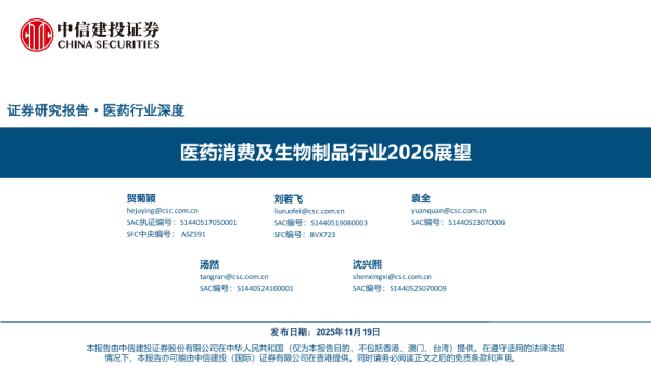 【中信建投证券】【202511】医药消费及生物制品行业2026展望-119页 证券期货研究报告