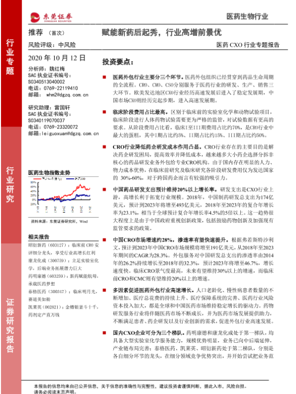 【东莞证券】【20201012】医药CXO行业专题报告:赋能新药后起秀,行业高增前景优-66页 行业研究