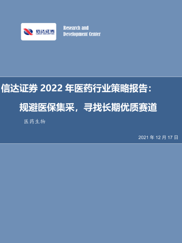 【信达证券】【20211217】2022年医药行业策略报告:规避医保集采,寻找长期优质赛道-36页 行业研究