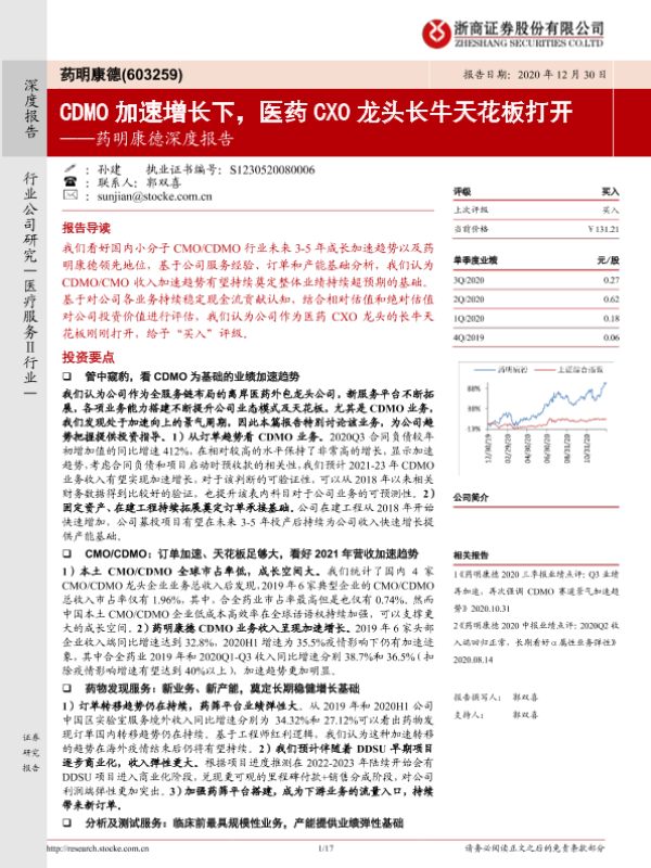 【浙商证券】【20201230】药明康德深度报告:CDMO加速增长下,医药CXO龙头长牛天花板打开-17页 行业研究