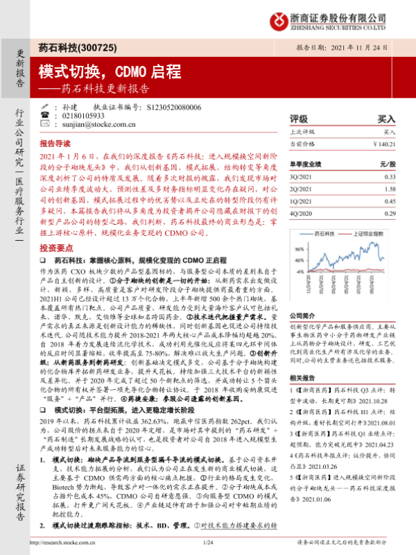 【浙商证券】【20211124】药石科技更新报告:模式切换,CDMO启程-24页 行业研究