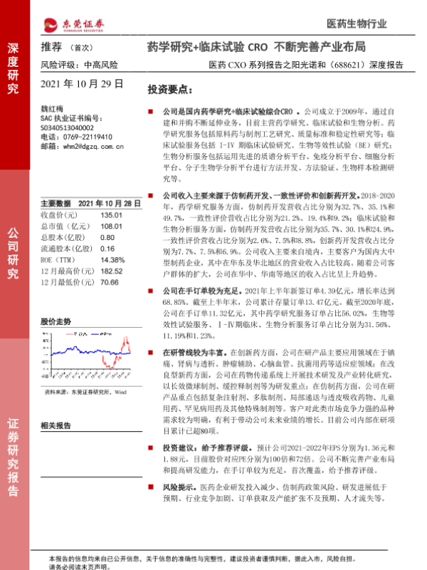 【东莞证券】【20211029】医药CXO系列报告之阳光诺和深度报告:药学研究+临床试验CRO不断完善产业布局-27页 行业研究