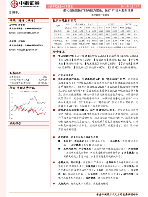 【中泰证券】【20210523】强化县医院医疗服务能力建设,医疗IT投入迎新增量-9页 行业研究