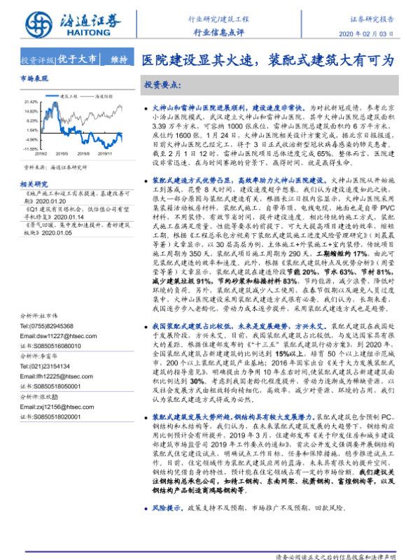【海通证券】【20200203】建筑工程:医院建设显其火速,装配式建筑大有可为-2页 行业研究