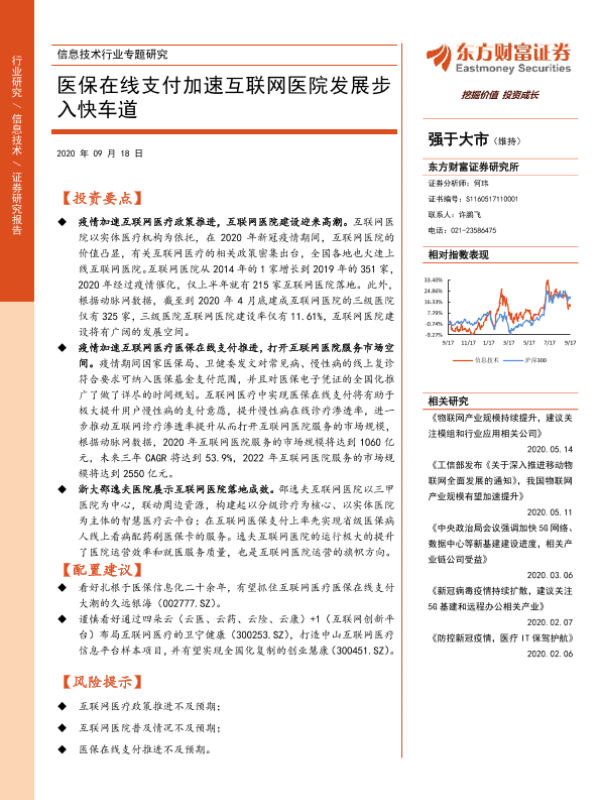 【东方财富证券】【20200918】信息技术行业专题研究:医保在线支付加速互联网医院发展步入快车道-23页 行业研究