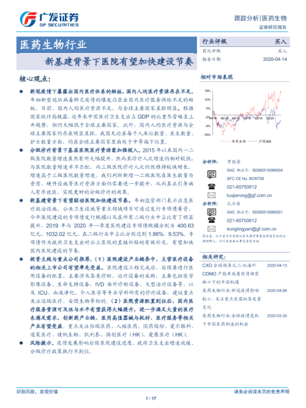 【广发证券】【20200414】新基建背景下医院有望加快建设节奏-17页 行业研究